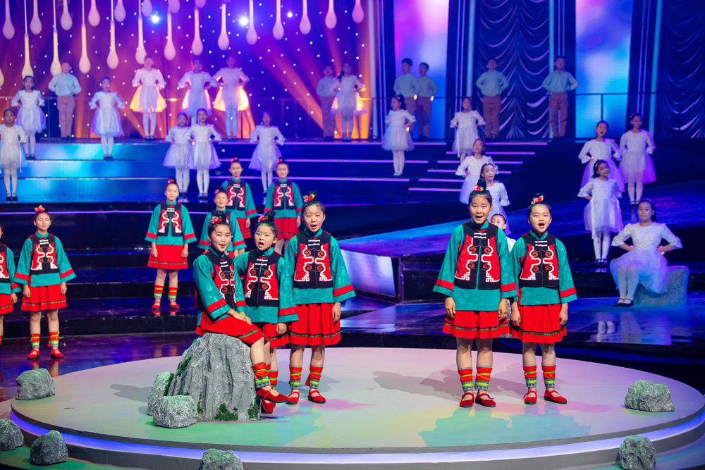 節(jié)目組邀請了北京市少年宮、北京愛樂樂團兒童合唱團、天使合唱團等專業(yè)能力和外在展示都很十分“在線”的新生代兒童合唱團體,以及來自玉樹的藏族童聲合唱團、云南彝苗合唱團、四川大涼山昭覺縣晨曦藝術(shù)團等少數(shù)民族團體,表演舞臺從演播室到音樂廳,由雪域高原至邊疆哨所,由大廈城市到田野山川,用跨越神州的天籟童聲抒發(fā)情感和深化主題。
