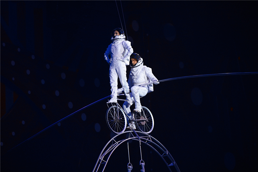 《新年奇幻夜》中的精彩大戲是充滿強烈的科技感、時尚感,以及運用豐富多元現(xiàn)代舞臺效果的馬戲節(jié)目,為觀眾呈現(xiàn)耳目一新的視覺體驗。其中來自匈牙利的《太空漫步》是國際馬戲節(jié)金獎節(jié)目,含金量十足。在近20米的高空,“宇航員”通過超高難度的表演,展現(xiàn)絕美的技藝,創(chuàng)造出身體平衡的極限之美!痘ㄊ交@球》節(jié)目首度將籃球與馬戲融合,雙人反手扣籃配合蹦床表演,純熟的籃球技術(shù)和矯健的身手在空中完成一個個花式上籃,一定會讓觀眾大飽眼福。