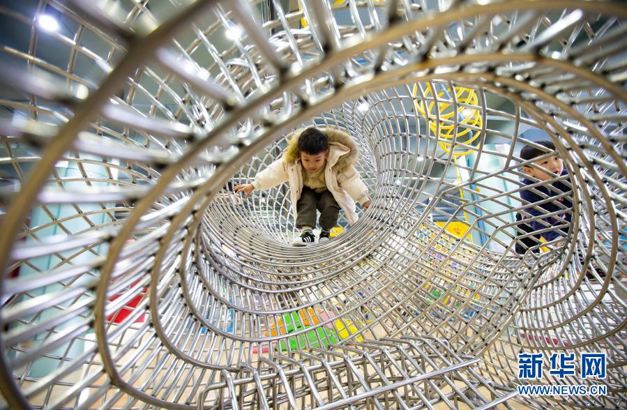 1月2日,小朋友在江蘇省南通市科技館的“神奇通道”體驗(yàn)游玩。