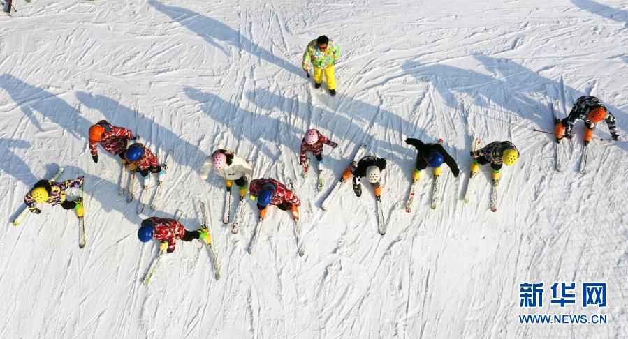 1月2日,滑雪愛好者在河北唐山遵化市一家滑雪場滑雪(無人機(jī)照片)。