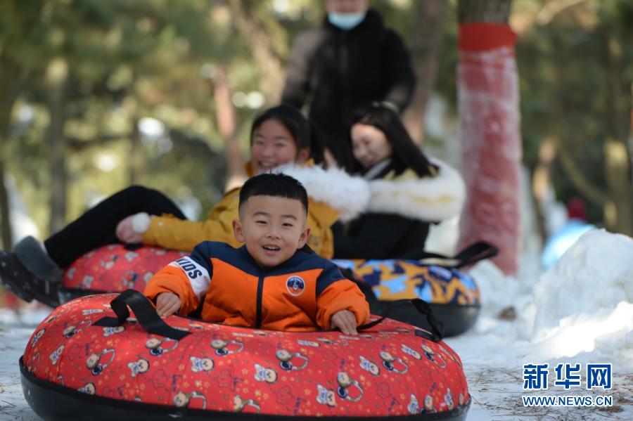 1月2日,小朋友在山東省榮成市石島管理區(qū)赤山風(fēng)景區(qū)體驗(yàn)滑雪圈。