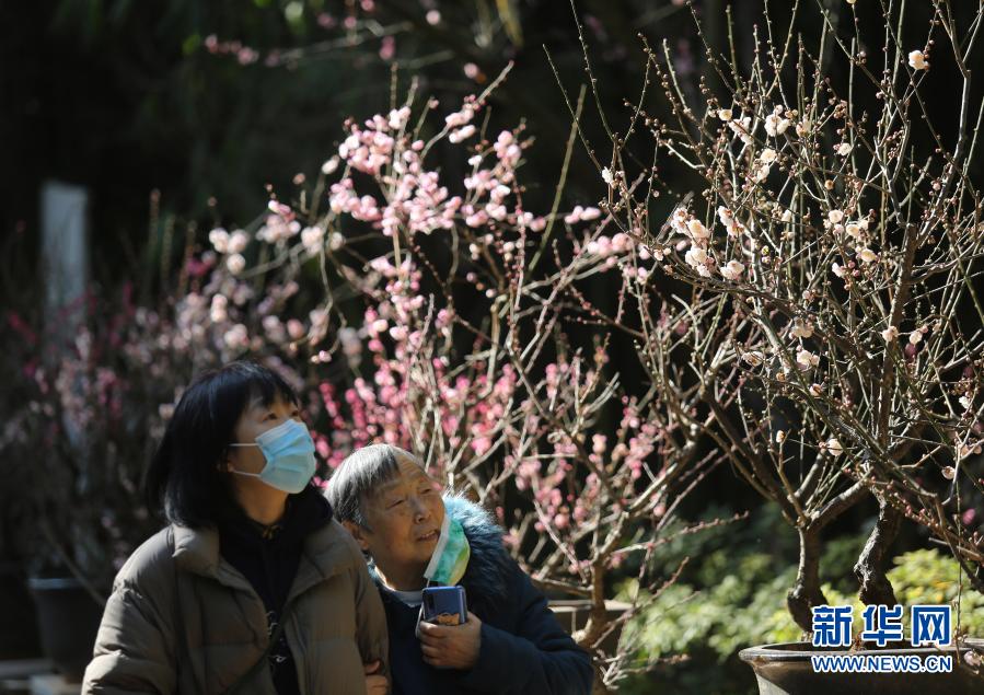 1月2日,游客在昆明市黑龍?zhí)豆珗@賞花。