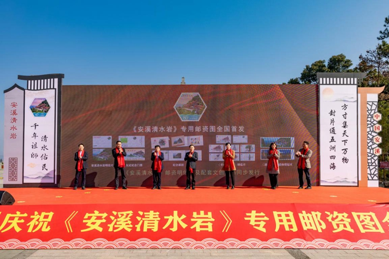1月18日《安溪清水巖》普通郵資明信片專用郵資圖發(fā)行儀式舉行 (劉伯怡 攝)