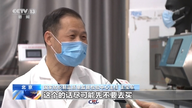國家紡織制品質(zhì)量監(jiān)督檢驗(yàn)中心主任 王寶軍:它要有生產(chǎn)批準(zhǔn)的號,另外還要有標(biāo)準(zhǔn)的號,它到底是按哪個標(biāo)準(zhǔn)去生產(chǎn)的。如果沒有標(biāo)準(zhǔn)的號,這個的話盡可能千萬不要去買,雖然說它也可能能達(dá)到這個要求,但是它沒有標(biāo)準(zhǔn)號,你自己很難判斷,所以就是首選比較正規(guī)的,標(biāo)注比較正規(guī)的這種口罩。