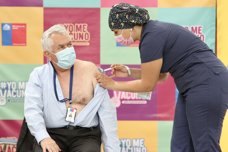 同一天,智利衛(wèi)生部長帕里斯在首都圣地亞哥也接種了中國新冠疫苗。