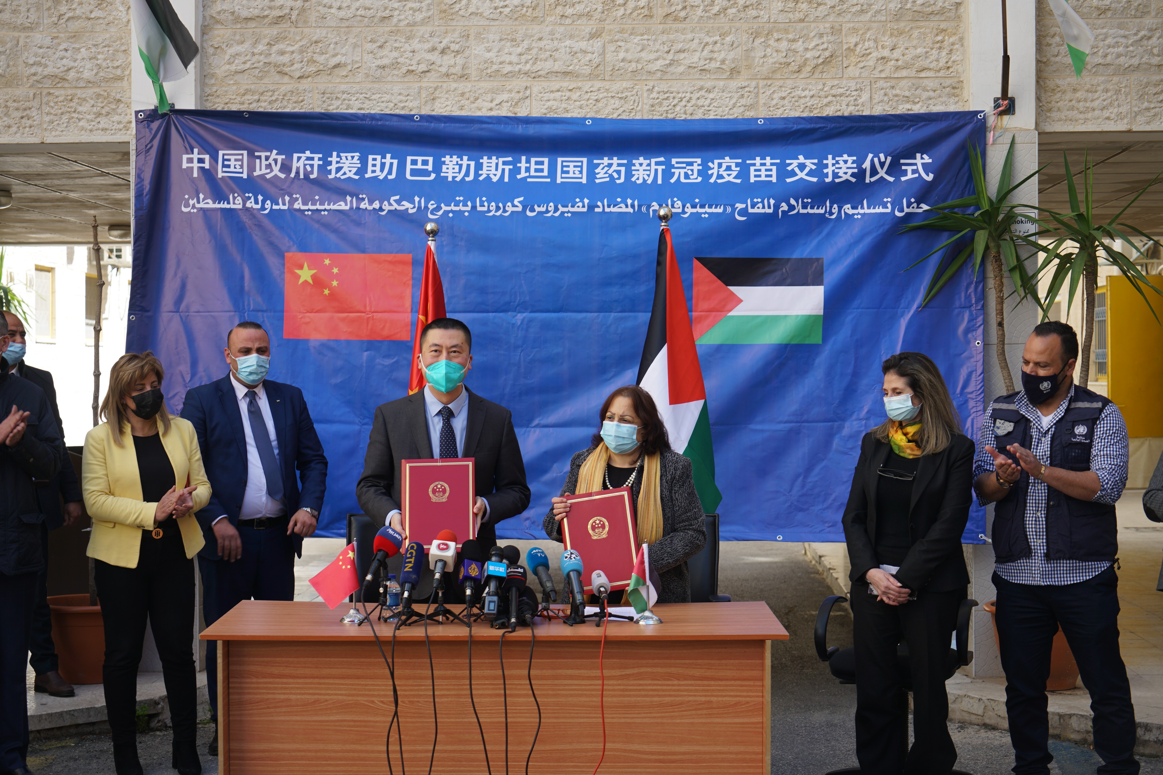巴勒斯坦國(guó)家通訊社、國(guó)家電視臺(tái)、馬安通訊社、《新生活報(bào)》、《耶路撒冷報(bào)》和半島電視臺(tái)、阿拉比亞電視臺(tái)、法新社等近20家當(dāng)?shù)睾蛧?guó)際地區(qū)主流媒體及新華社、CGTN、中央廣播電視總臺(tái)對(duì)交接儀式進(jìn)行了報(bào)道。