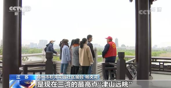 江蘇揚州杉灣花園社區(qū)居民 楊文龍:我們處的這個位置是現(xiàn)在三灣的最高點“津山遠眺”,像現(xiàn)在這個春天,我們大家看到可以說是繁花似錦,古運河的水是非常清澈......