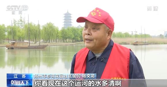 江蘇揚州杉灣花園社區(qū)居民 楊文龍:現(xiàn)在可以說是翻天覆地的變化,你看現(xiàn)在這個運河的水多清啊,現(xiàn)在的鳥類也朝這個地方飛了,像現(xiàn)在春天到了,來游玩的時候都覺得心曠神怡。