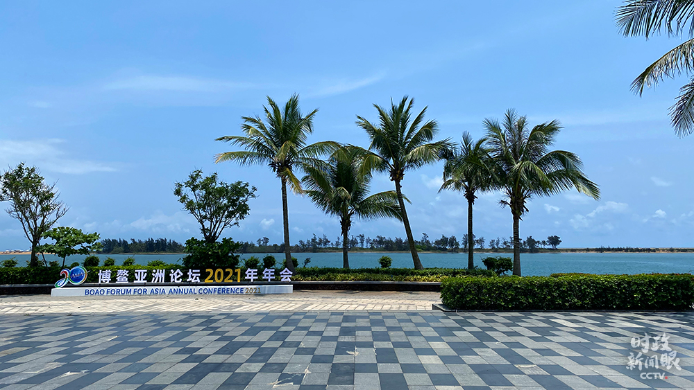 △博鰲亞洲論壇2021年年會新聞中心室外,椰風(fēng)海韻。(總臺央視記者耿旭菲拍攝)