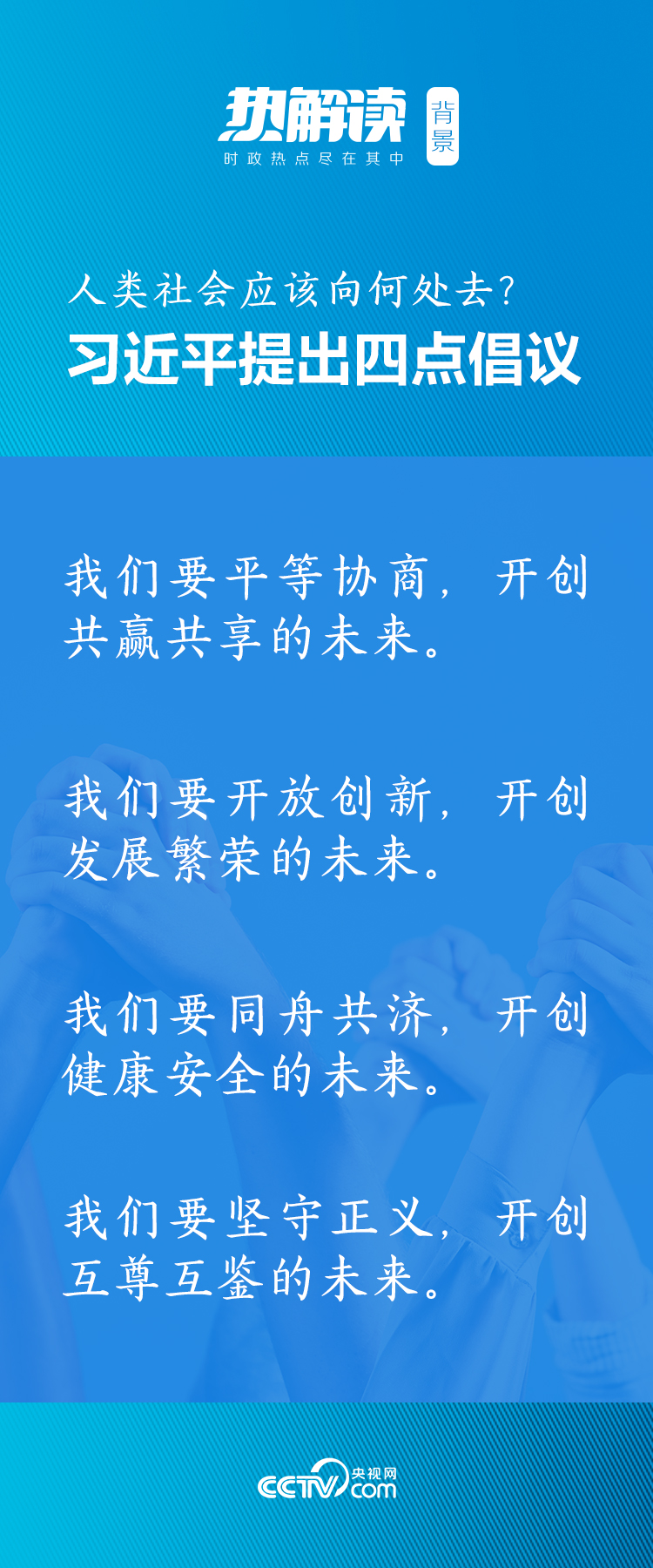 要平等協(xié)商、開放創(chuàng)新、同舟共濟(jì)、堅(jiān)守正義,習(xí)主席的“四點(diǎn)倡議”集中體現(xiàn)了共建一個(gè)普遍安全、共同發(fā)展國際社會(huì)的大國擔(dān)當(dāng)。