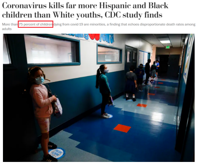 研究還發(fā)現,新冠肺炎對少數族裔兒童和青少年的影響尤為嚴重,美國死于新冠肺炎的未成年人中有75%以上是少數族裔。