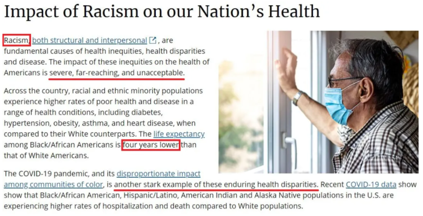 正如CDC在另一篇專文中指出的,新冠肺炎疫情對美國少數族裔造成的不成比例的影響是存在這些持久健康差距的又一個鮮明例子,而“種族主義是導致醫(yī)療不平等、健康差異和疾病的根本原因。這些不平等對他們的影響是嚴重的、深遠的、不可接受的”。