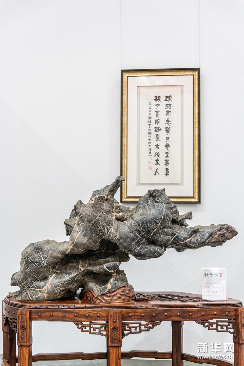 “百石千秋”大型石展近日亮相上海龍華寺大會堂。