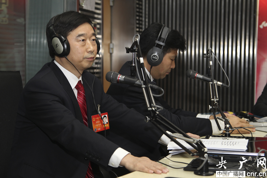 全國人大代表、河南省信陽市市長喬新江做客中國之聲《政務(wù)直通》(央廣網(wǎng)記者 趙娜娜 攝)