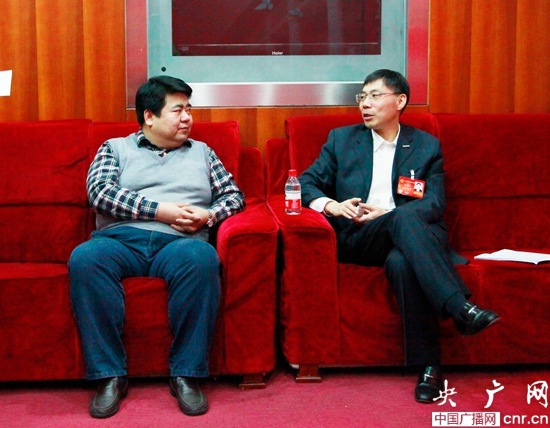 全國人大代表、浪潮集團(tuán)董事長孫丕。ㄓ遥┰诮(jīng)濟(jì)之聲2014兩會(huì)高端訪談《企業(yè)家說》貴賓室。攝影 趙娜娜