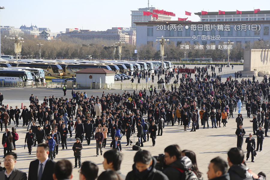 人大舉行預(yù)備會議前代表入場畫面(圖片來源:央廣網(wǎng)/涂傲)