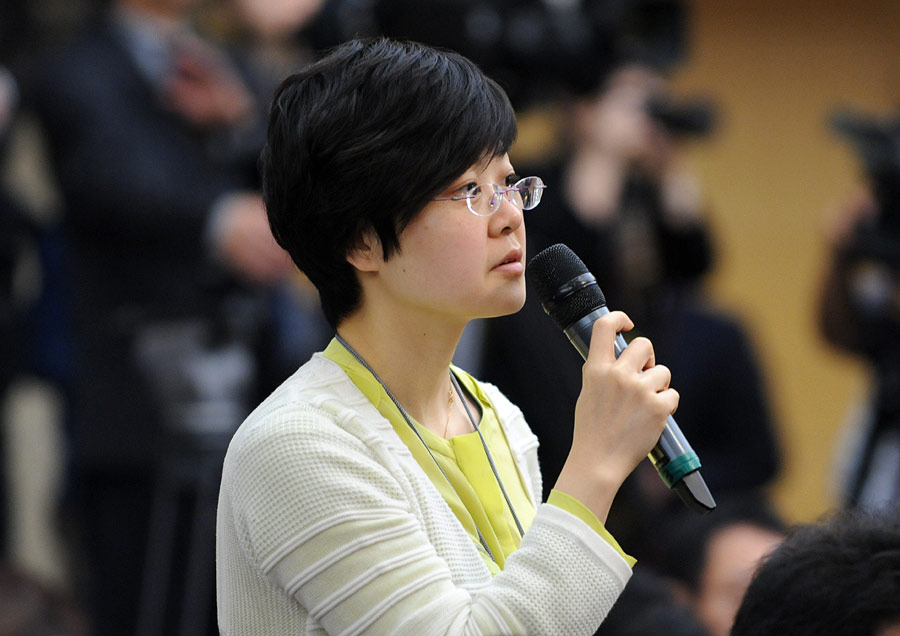 2014年3月6日上午9時(shí),十二屆全國人大二次會(huì)議新聞中心在梅地亞中心多功能廳舉行記者會(huì),邀請(qǐng)財(cái)政部部長樓繼偉、副部長張少春就“財(cái)稅體制改革和財(cái)政工作”的相關(guān)問題回答中外記者的提問。圖為揚(yáng)子晚報(bào)社記者提問。新華網(wǎng)/中國政府網(wǎng) 翟子赫攝