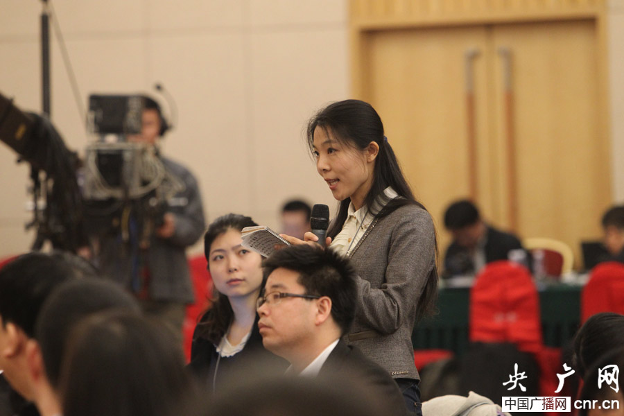 中央人民廣播電臺(tái)、央廣網(wǎng)記者張棉棉提問(央廣網(wǎng)記者 杜虎 攝)