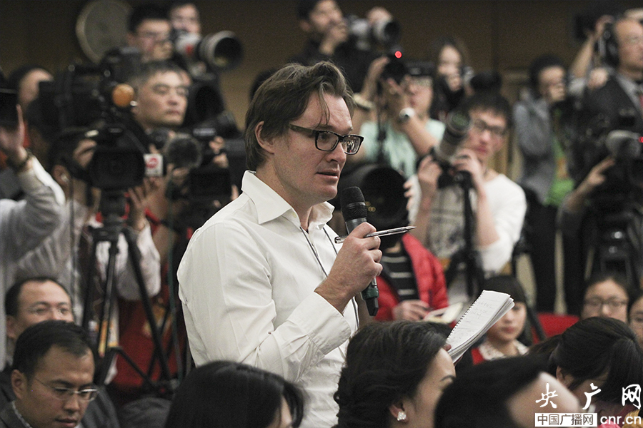 澳大利亞金融時報記者提問(央廣網(wǎng)記者 張曈 攝)