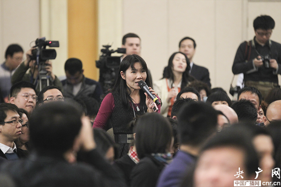 臺(tái)灣旺報(bào)記者提問(wèn)(央廣網(wǎng)記者 張曈 攝)