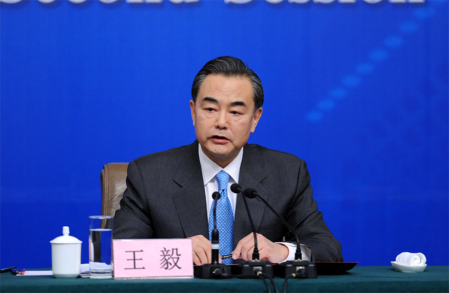 3月8日,十二屆全國(guó)人大二次會(huì)議舉行記者會(huì),外交部部長(zhǎng)王毅就“中國(guó)的外交政策和對(duì)外關(guān)系”答中外記者問(wèn)。圖為王毅回答記者提問(wèn)。新華網(wǎng)/中國(guó)政府網(wǎng) 陳競(jìng)超 攝