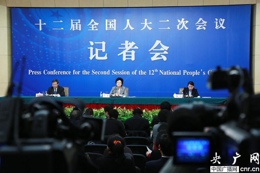 十二屆全國(guó)人大二次會(huì)議新聞中心于3月6日(星期四)16時(shí)在梅地亞中心多功能廳舉行記者會(huì),邀請(qǐng)國(guó)家衛(wèi)生和計(jì)劃生育委員會(huì)主任李斌就“衛(wèi)生計(jì)生事業(yè)改革發(fā)展”的相關(guān)問(wèn)題回答中外記者的提問(wèn)(央廣網(wǎng)記者 涂傲 攝)