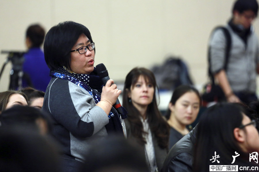 中國(guó)婦女報(bào)、中華女性網(wǎng)記者提問(wèn)(央廣網(wǎng)記者 涂傲 攝)