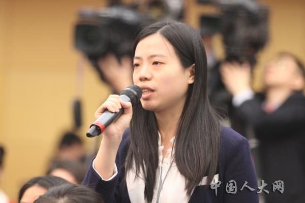 3月10日上午,十二屆全國(guó)人大二次會(huì)議在梅地亞中心舉行記者會(huì),郭鳳蓮、鐘南山等五位全國(guó)人大代表就“人大代表依法履職”的相關(guān)問(wèn)題回答中外記者的提問(wèn)。圖為人民日?qǐng)?bào)社記者提問(wèn)。羅榮 攝