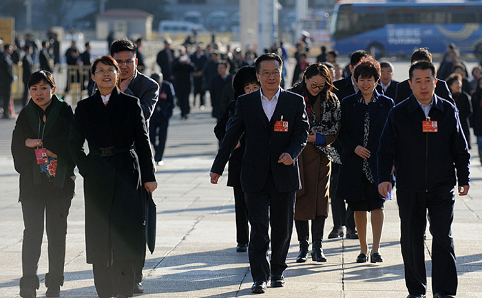 政協(xié)委員步入會(huì)場(chǎng),3月11日(星期五)9時(shí),全國(guó)政協(xié)十二屆四次會(huì)議在人民大會(huì)堂舉行第三次全體會(huì)議,多名政協(xié)委員將就相關(guān)議題作大會(huì)發(fā)言。圖為政協(xié)委員步入會(huì)場(chǎng)。新華網(wǎng)/中國(guó)政府網(wǎng)記者 陳競(jìng)超 攝