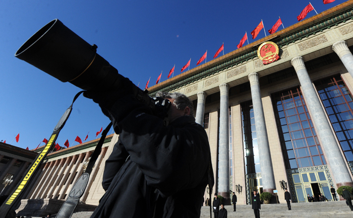 廣場(chǎng)上正在采訪(fǎng)拍攝的媒體記者,3月11日(星期五)9時(shí),全國(guó)政協(xié)十二屆四次會(huì)議在人民大會(huì)堂舉行第三次全體會(huì)議,多名政協(xié)委員將就相關(guān)議題作大會(huì)發(fā)言。新華網(wǎng)/中國(guó)政府網(wǎng)記者 陳競(jìng)超 攝 3月11日(星期五)9時(shí),全國(guó)政協(xié)十二屆四次會(huì)議在人民大會(huì)堂舉行第三次全體會(huì)議,多名政協(xié)委員將就相關(guān)議題作大會(huì)發(fā)言。