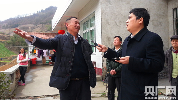 中央臺駐陜西首席記者、記者站站長黃立新采訪安康市漢濱區(qū)洪山鎮(zhèn)石獅村黨支部書記許啟雄