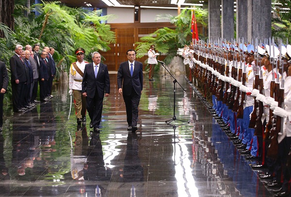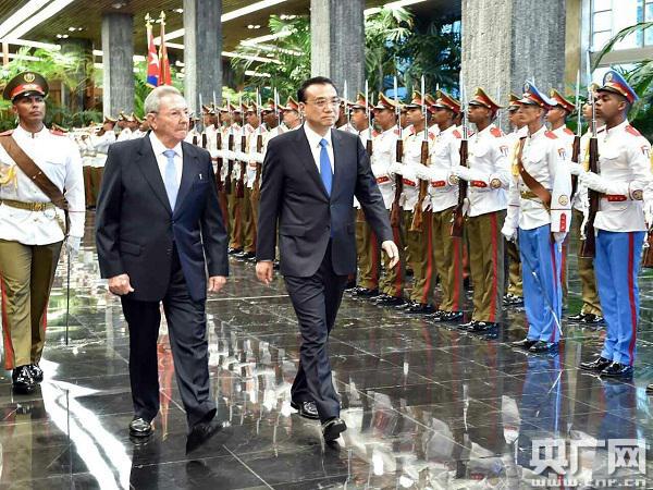勞爾·卡斯特羅主持儀式歡迎李克強(qiáng)到訪