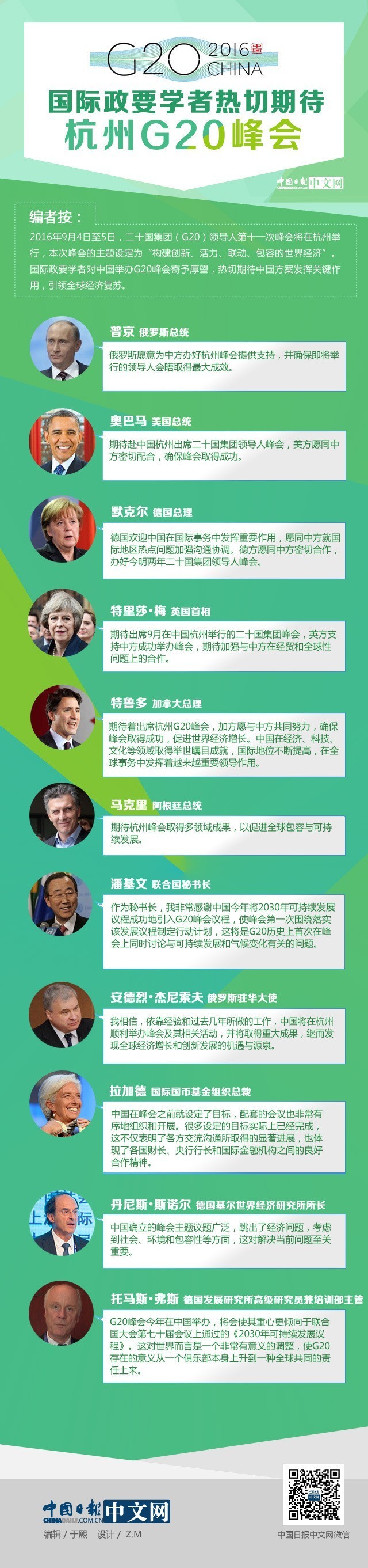 聚焦 | 國(guó)際政要學(xué)者熱切期待G20杭州峰會(huì)