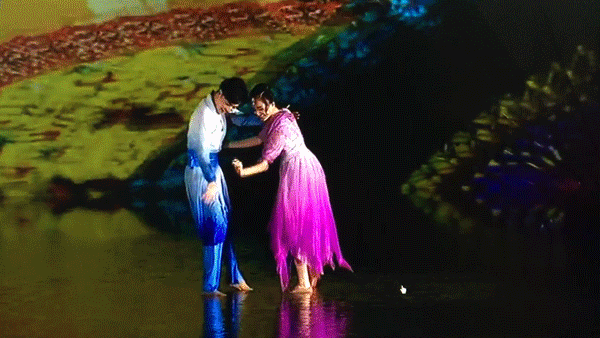 “這個場景也是整場演出的開場,是演員最多的一個節(jié)目,充分體現(xiàn)在江南美麗富饒的土壤中獨具韻味的文化!