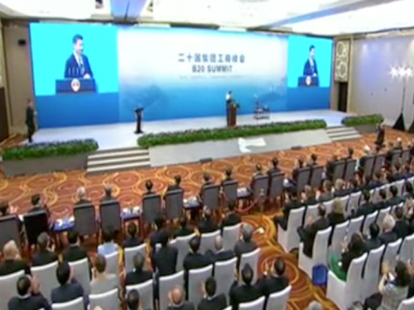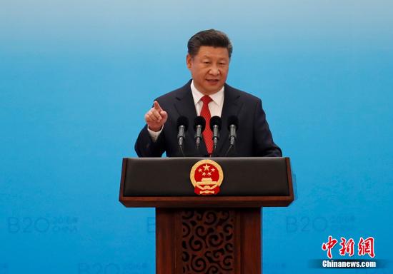 9月3日,中華人民共和國主席習近平在二十國集團工商峰會開幕式上發(fā)表主旨演講。 中新社記者 杜洋 攝
