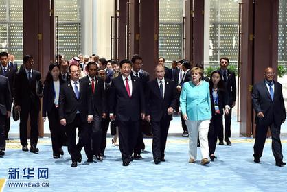 9月4日,二十國集團(tuán)領(lǐng)導(dǎo)人第十一次峰會(huì)在杭州國際博覽中心舉行。國家主席習(xí)近平主持會(huì)議并致開幕辭。這是二十國集團(tuán)成員和嘉賓國領(lǐng)導(dǎo)人、有關(guān)國際組織負(fù)責(zé)人步入會(huì)場。新華社記者李濤攝