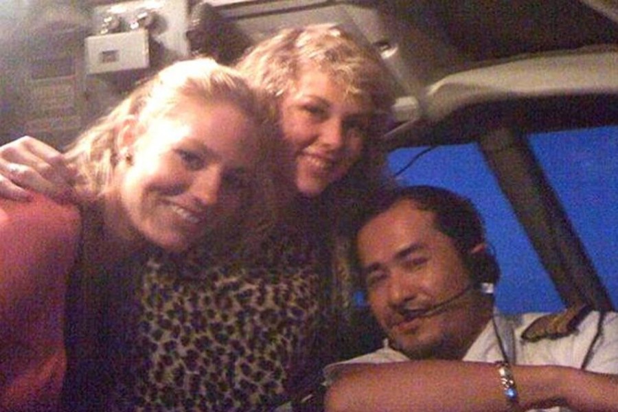 澳大利亞第九頻道電視臺(tái)《時(shí)事》欄目3月11日?qǐng)?bào)道,馬航失聯(lián)客機(jī)的副駕駛兩年多前曾邀2名陌生女乘客進(jìn)入駕駛艙一起進(jìn)入駕駛艙。據(jù)報(bào)道稱飛機(jī)起飛后,倆名飛行員全程都在和她們玩鬧,甚至回頭為其“看手相”。圖為兩名澳大利亞籍女乘客在飛行過(guò)程中與駕駛員合影。