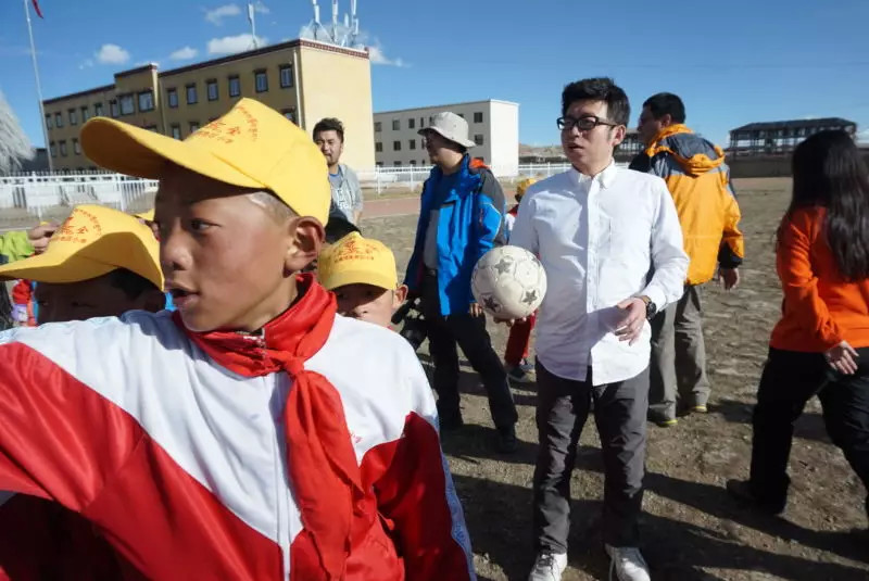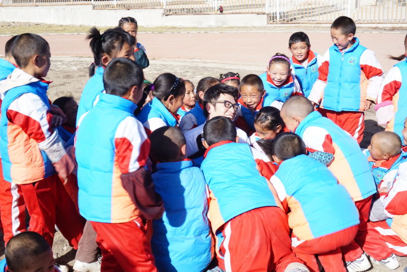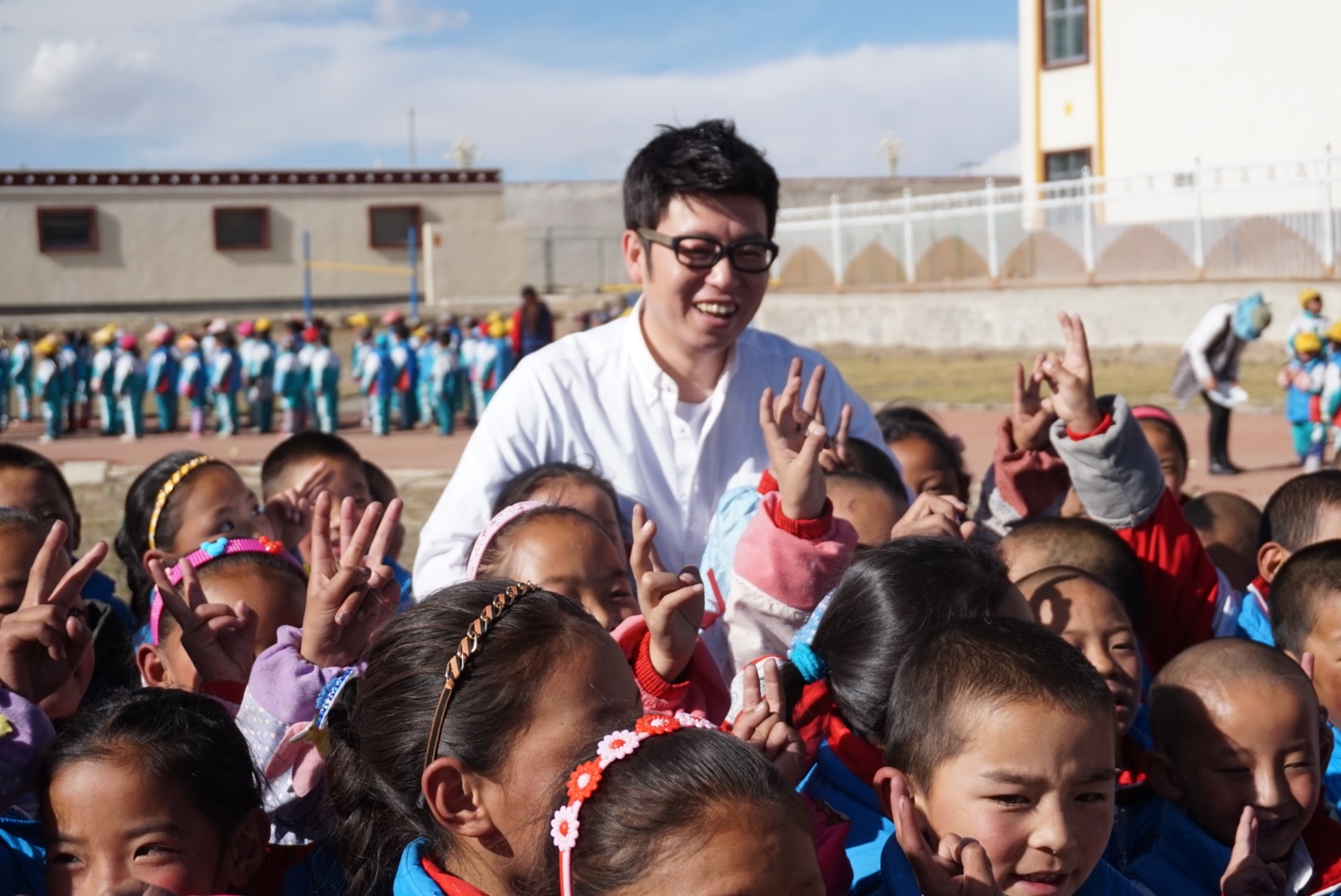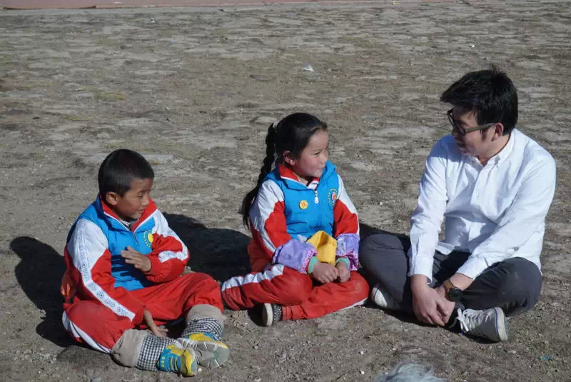一到那曲,我們就來到了當(dāng)?shù)氐哪乔貐^(qū)小學(xué)。當(dāng)車駛?cè)肽乔貐^(qū)小學(xué)的時候,正好趕上課間,同學(xué)們都在教學(xué)樓下玩耍?吹轿覀円幌萝,他們就圍過來和我們say hello!這么洋氣的打招呼一下讓高反的小伙伴頓時精神了起來。靜靜介紹,那曲小學(xué)已經(jīng)實現(xiàn)了藏語和漢語雙語教學(xué),基本上可以和我們進(jìn)行無障礙的漢語交流。