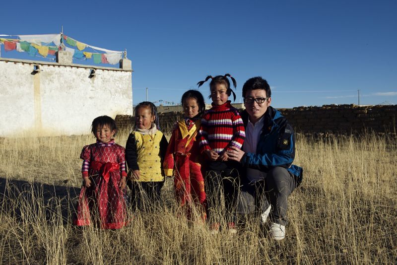 5月的那曲天氣還是稍顯寒冷,不過(guò)我們還是決定坐在草地上,曬著暖暖的陽(yáng)光,聊聊天。而靜靜則在一旁為云旦措姆姐弟們拍照、玩耍。