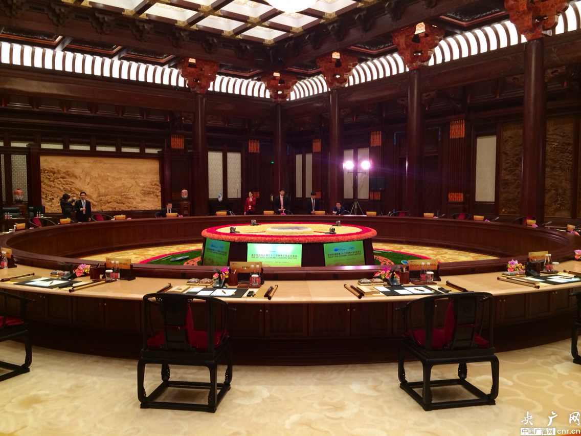 按慣例,會議并非全程對媒體開放,習近平主席致開幕辭后,所有在場記者有序離開。記者們在離開時都不約而同的在談論會場的中國風布置。(中央臺記者 劉樂)