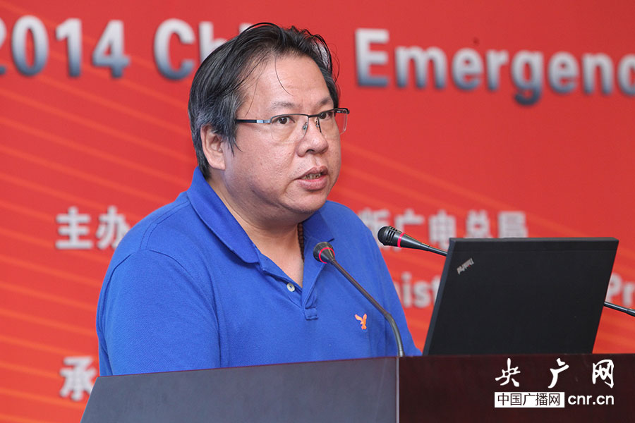 圖為阿里巴巴集團(tuán)副總裁、數(shù)據(jù)委員會(huì)會(huì)長(zhǎng)車品覺(jué)做題為《國(guó)家應(yīng)急廣播決策流程的大數(shù)據(jù)應(yīng)用》的發(fā)言。(央廣網(wǎng)記者杜虎_攝)