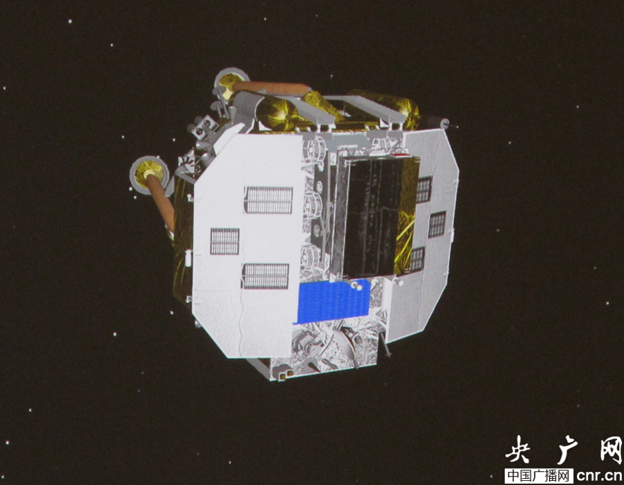 器箭分離后,嫦娥三號探測器在既定軌道中運(yùn)行(3D模擬動(dòng)畫)(央廣網(wǎng)發(fā) 朱虹攝)