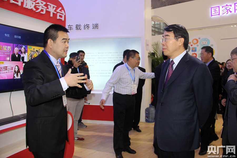 國(guó)家新聞出版廣電總局副局長(zhǎng)田進(jìn)參觀中國(guó)網(wǎng)絡(luò)視聽(tīng)大會(huì)央廣展臺(tái)