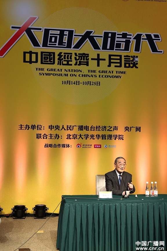 央廣網(wǎng)財(cái)經(jīng)北京10月15日消息(經(jīng)濟(jì)之聲記者柯成韻 劉中琪)由中央人民廣播電臺(tái)經(jīng)濟(jì)之聲、央廣網(wǎng)主辦的《大國(guó)大時(shí)代----中國(guó)經(jīng)濟(jì)十月談》系列時(shí)事報(bào)告會(huì),10月14日在北京大學(xué)啟動(dòng)。第一場(chǎng)報(bào)告會(huì)“改革談—大國(guó)經(jīng)濟(jì)該從哪里升級(jí)”由著名經(jīng)濟(jì)學(xué)家厲以寧教授、中國(guó)銀河證券首席總裁顧問(wèn)左小蕾主講。
