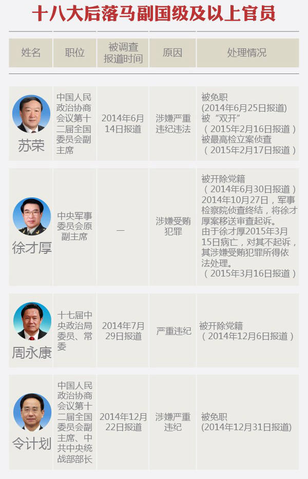 十八大后落馬副國級及以上官員