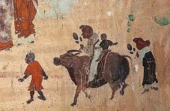 比如莫高窟壁畫中有牛頭山圖,是佛教自印度經(jīng)于闐東傳中國的縮影之一。莫高窟第454窟牛頭山圣跡圖中就有登天梯的畫面,天梯巧妙的穿過牛頭,攀登天梯的人顯的極為渺小,畫師繪制通過大小對比,凸顯出牛頭龐大的體量感。牛頭山據(jù)說就在今天新疆的和田綠洲西南部。