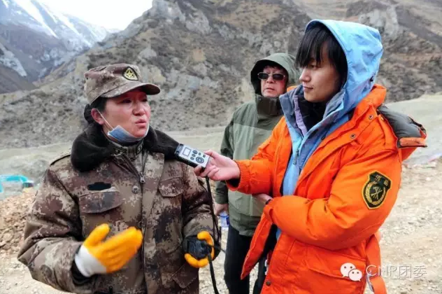 2013年在原杰站長(zhǎng)帶領(lǐng)下采訪西藏3·29山體滑坡救援