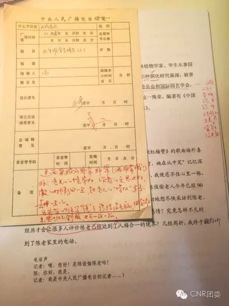 再后來節(jié)目改版,有了《人物春秋》,那4年半,真的好美啊。能夠面對面和一個采訪對象采訪3、4個小時,采訪一群盲藝人可以跟著他們采訪好幾天,現(xiàn)在想來,何其奢華。那時稿件的終審是魏漫倫老師,牢牢記得,她用鉛筆或是紅筆在打印出的稿子上標(biāo)出各種標(biāo)記,常常會在某一個詞語旁邊寫下一段話:這個詞在字典中的意思是……,我猜想你想表達(dá)的意思是……,若是這樣,這個詞是否更合適?除了文稿中的這些標(biāo)記,她還會在前面的稿簽上寫下一段總體評語,三行五行,卻是當(dāng)時《人物春秋》節(jié)目組的同事最盼望看到的。寫得好的,她會寫:這篇稿件是非常好,非常好的!都有哪些好,也都會一一列舉,看得人嘴角都忍不住要上揚(yáng)幾度。若是寫得并不滿意,她也會寫下如果哪里做出調(diào)整和修改,將會更好之類的話。前一段時間翻出厚厚一摞的舊稿件,翻看一遍那些稿簽上的字,還是舍不得丟棄。