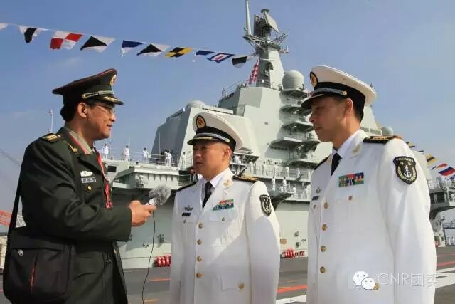 遼寧艦交接入列時(shí)采訪艦長(zhǎng)張崢、政委梅文
