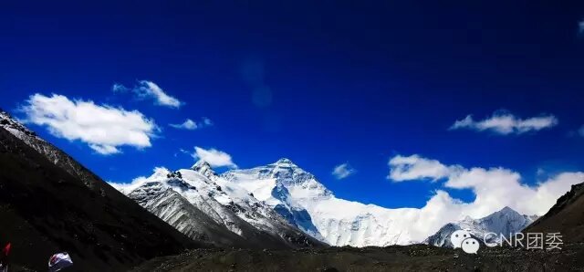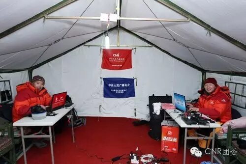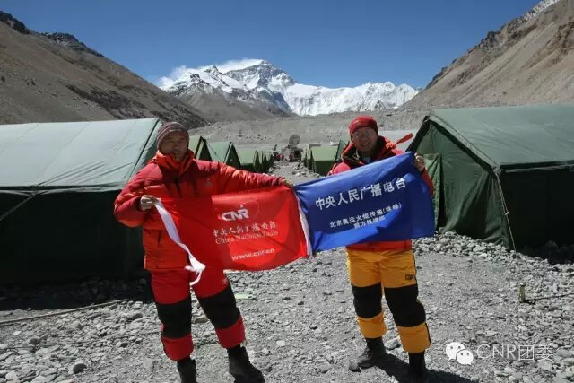 中央臺的旗幟在珠峰大本營飄揚